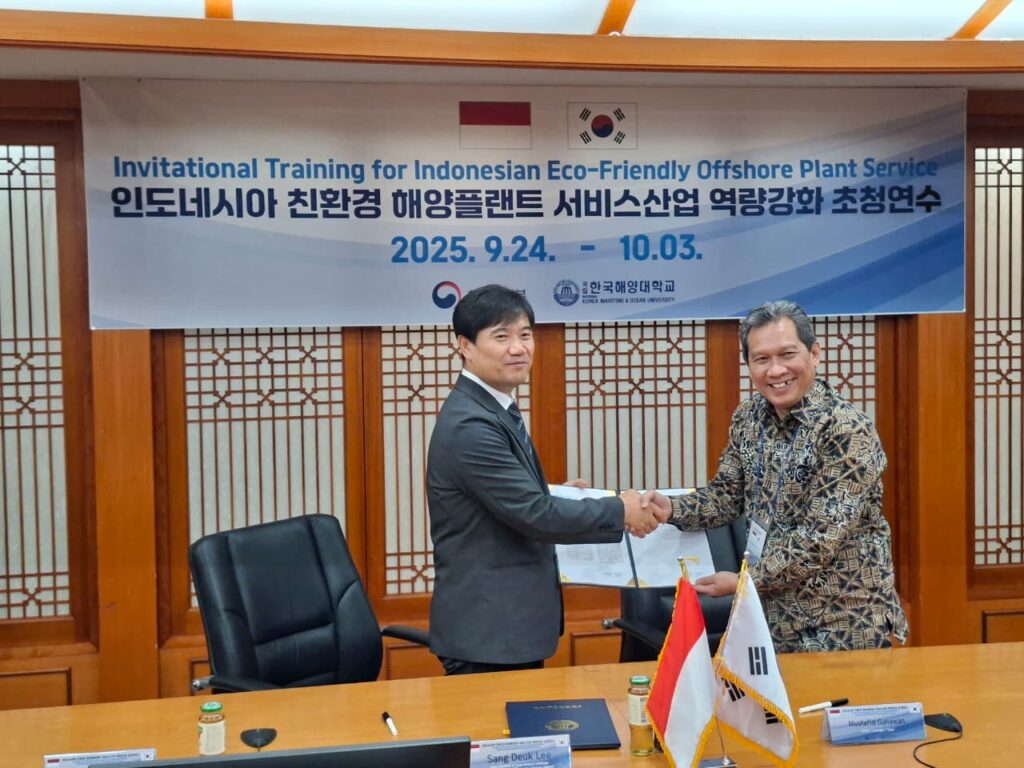 29 September 2025 – A Memorandum of Understanding (MoU) between the Korea Maritime and Ocean University (KMOU) Education Technology Research Support Center (ETRS Center) and the Balai Besar Pengujian Minyak dan Gas Bumi LEMIGAS (LEMIGAS) concerning Offshore Technology and Infrastructure Development for Energy Transition was finalized during the LEMIGAS Head’s visit to KMOU.